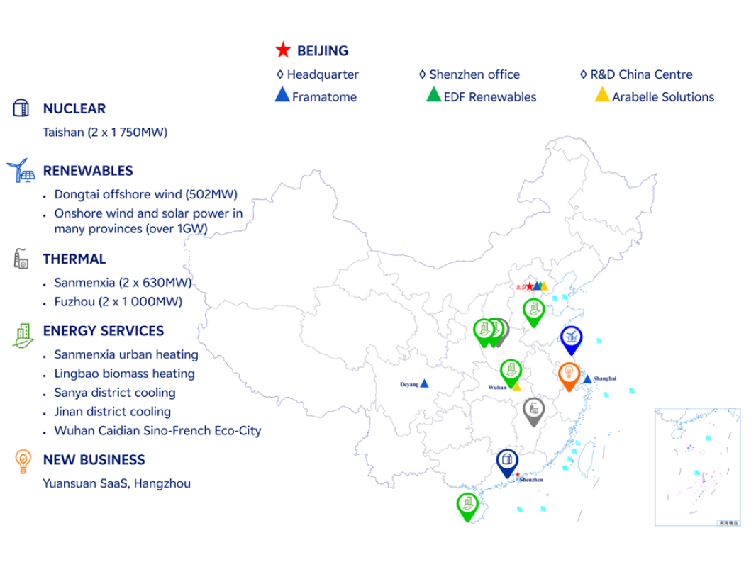 In addition to its production sites, EDF develops low carbon solutions for cities and industrial players in China in the fields of energy efficiency and decentralized power generation.
